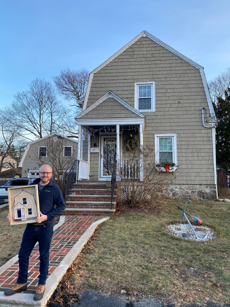 The standard wood frame is 16 inches x 20 inches and comes with mounting hardware on the back, ready to hang on the wall. Larger pieces are available, or if you have a specific frame you’d like your house mounted to, I’m happy to work with you and adjust the dimensions. Again, pricing may vary.